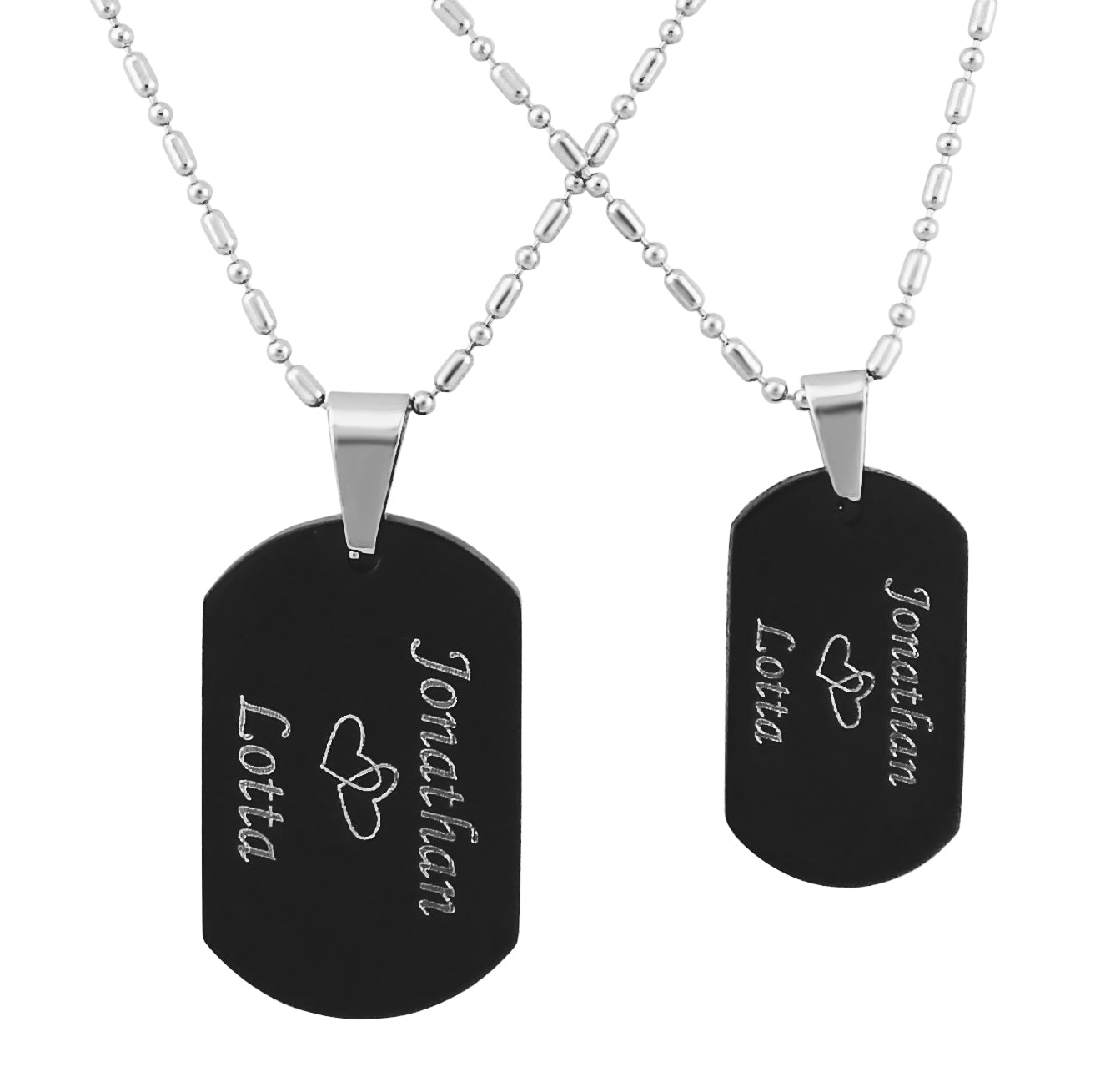 2 Personalisierte Ketten mit Gravur Edelstahl 44 cm mit Anhänger Dog Tag Erkennungsmarke in schwarz