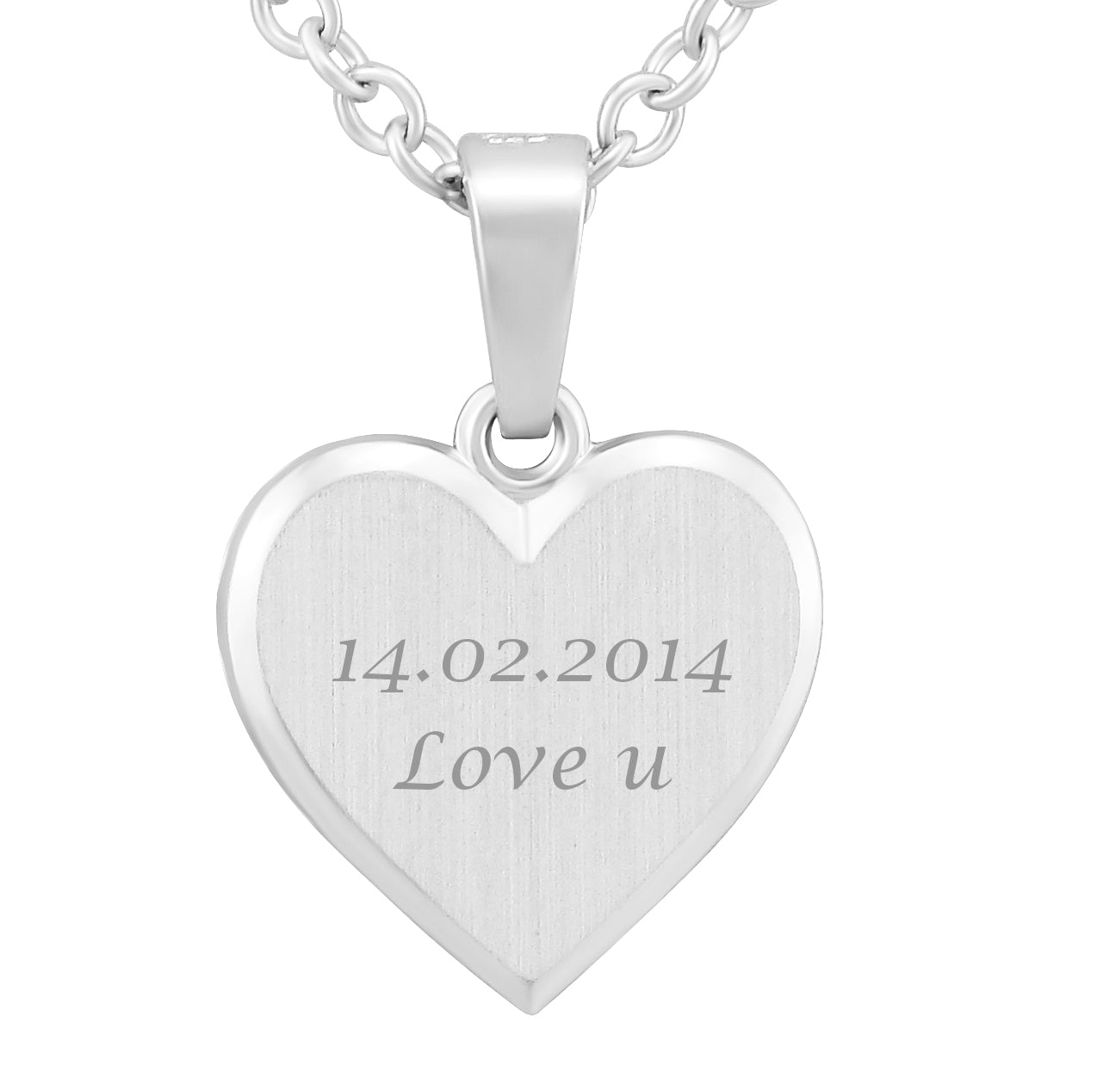 925 Sterling Silber Kette mit Gravur 42 + 3 cm mit Anhänger Herz matt in silber