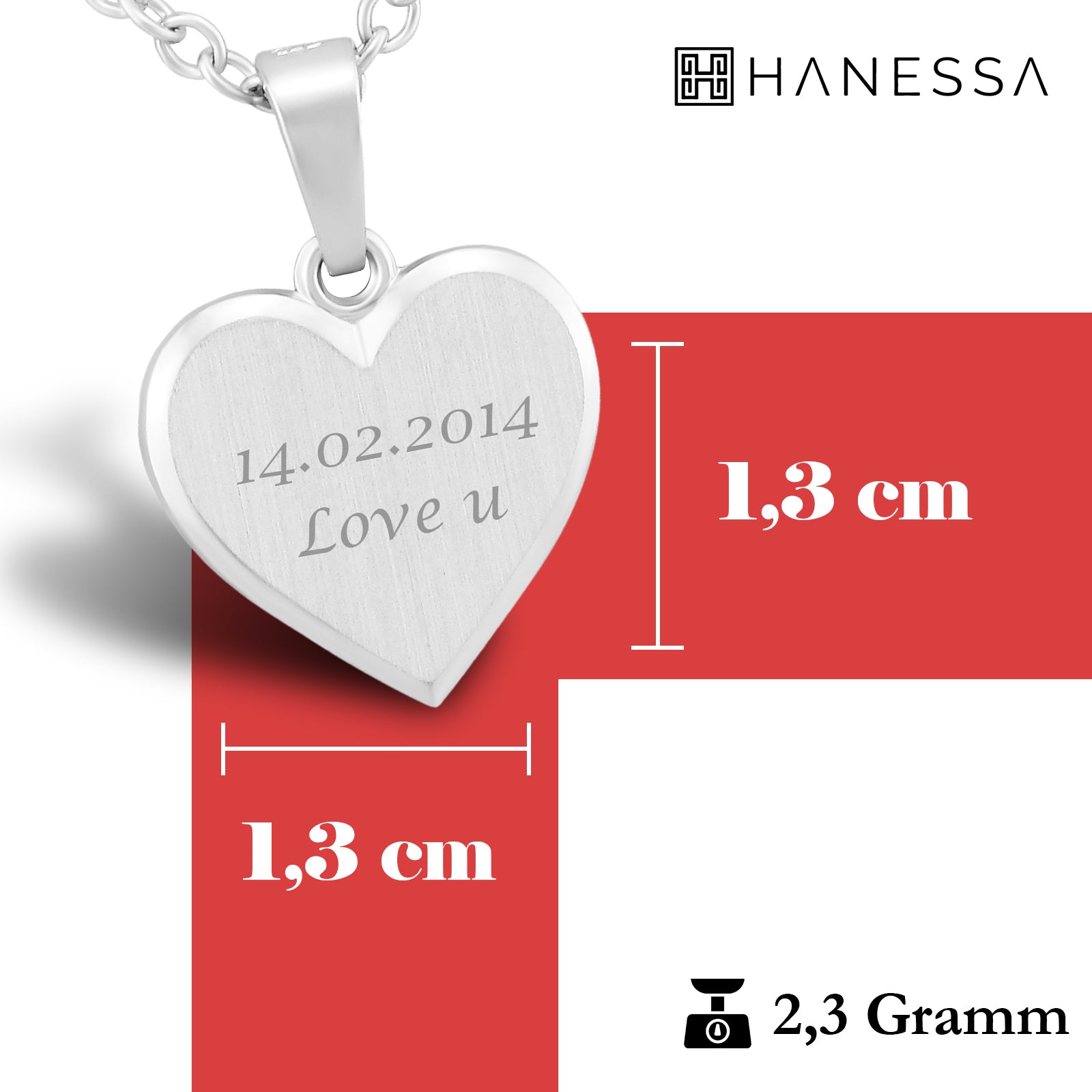 Mit Ihrer neuen Halskette von Hanessa halten Sie in kürze ein hochwertiges Schmuckstück mit persönlichen Gravur in den Händen. Durch unsere Liebe zum Detail erhalten Sie ein einmaliges Unikat, welches mit Ihrer Wunschgravur angefertigt wird.