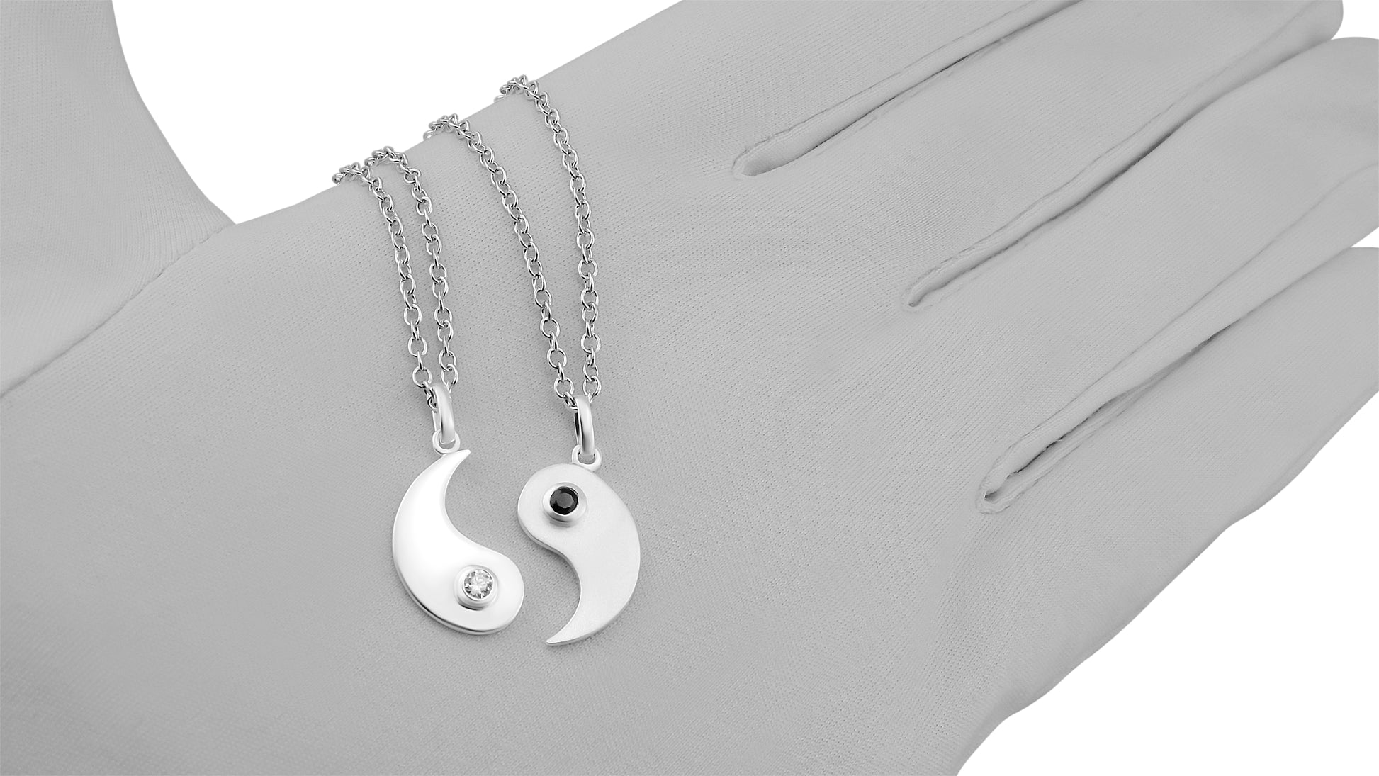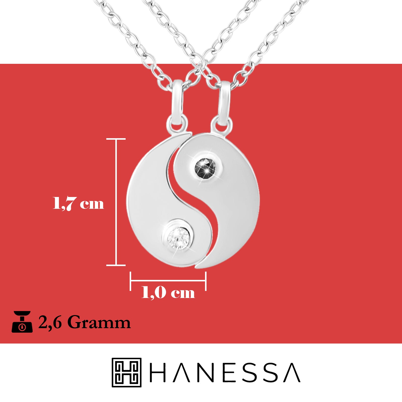 Hanessa 2 Stück Personalisierte Kette mit Gravur 925 Sterling Silber 47 cm mit Anhänger Yin Yang in silber - Personalisierte Geschenke für Damen Herren Freundin Freund - Partner Halskette Sie Ihn