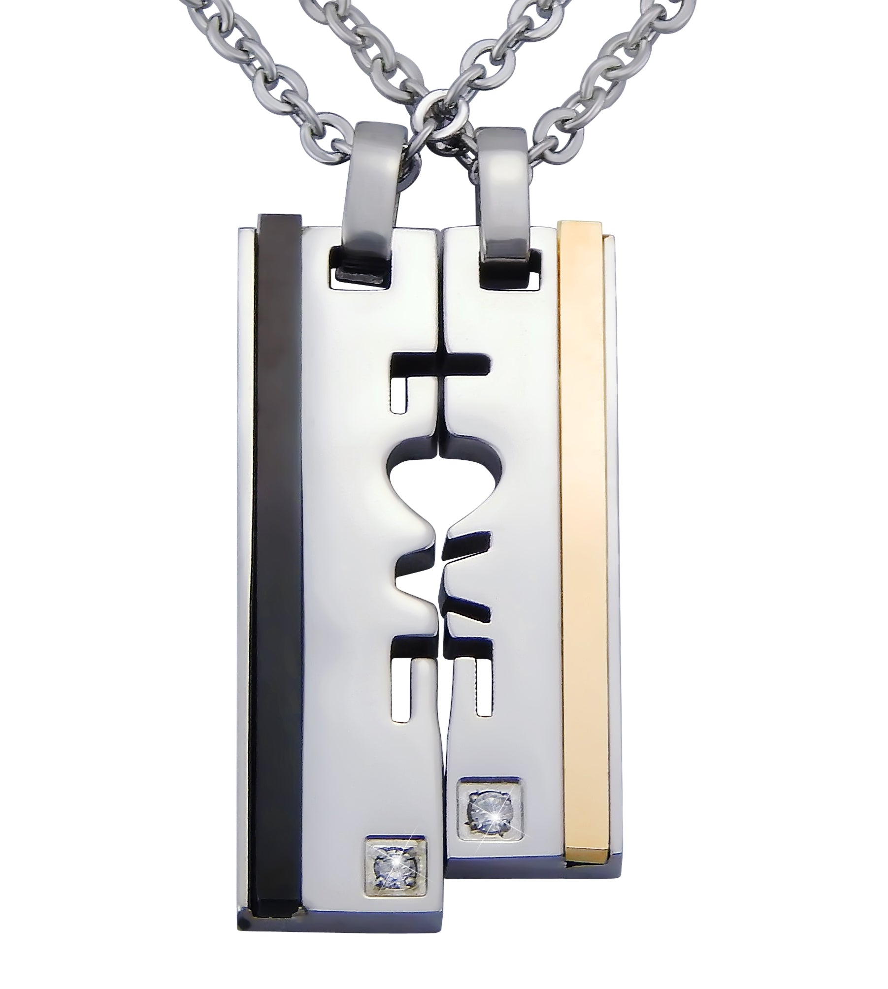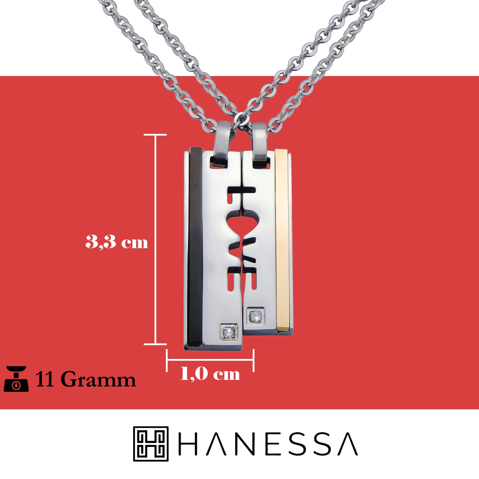 Hanessa 2 Stück Personalisierte Kette mit Gravur Edelstahl 50 cm mit Anhänger LOVE mit Stein in silber schwarz gold