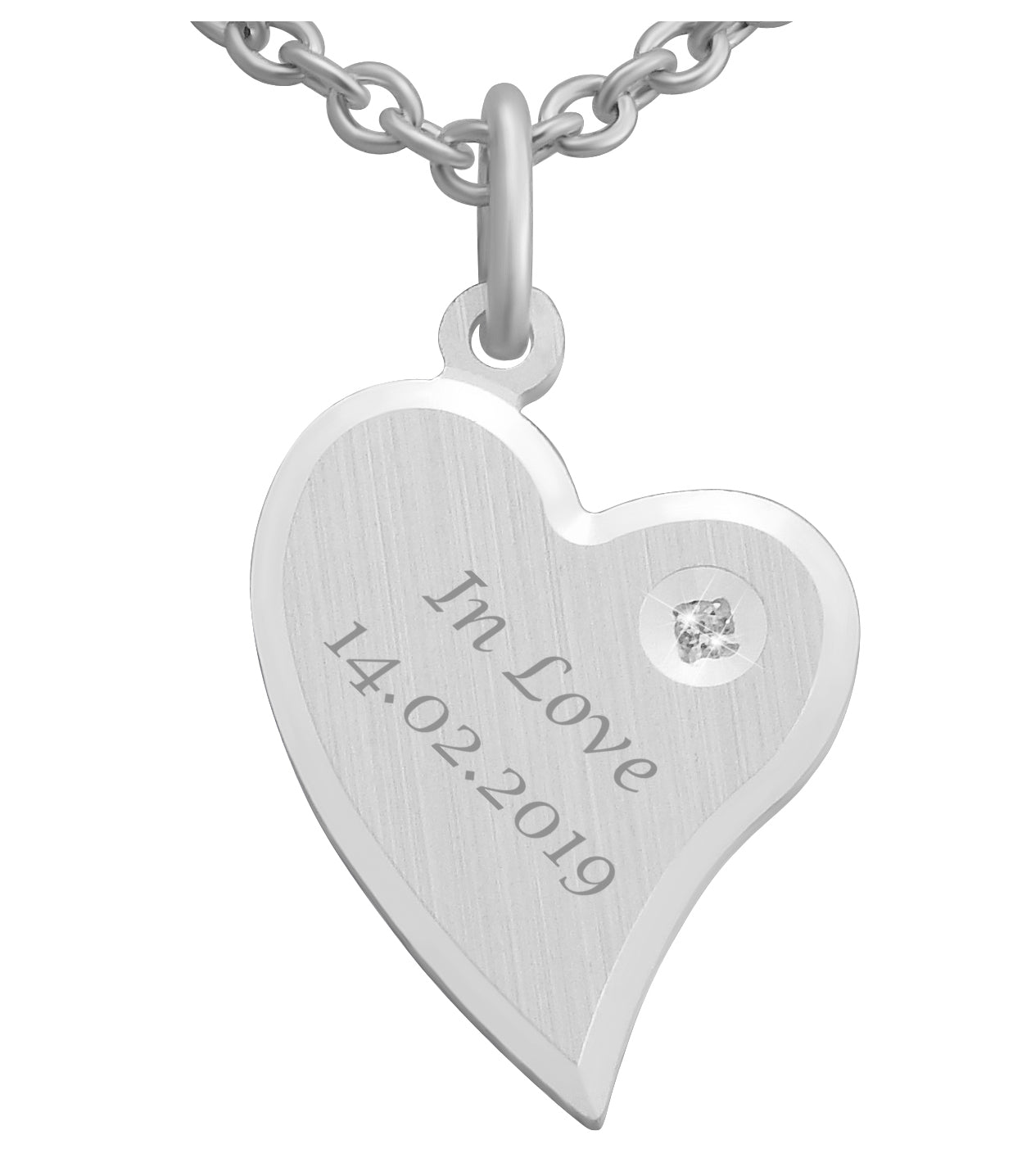 925 Sterling Silber Kette mit Gravur 42 + 3 cm mit Anhänger Herz mit Strass-Stein in silber