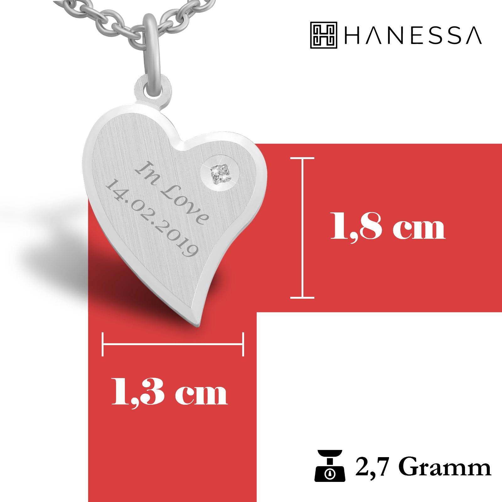 • Mit Ihrer neuen Halskette von Hanessa halten Sie in kürze ein hochwertiges Schmuckstück mit persönlichen Gravur in den Händen. Durch unsere Liebe zum Detail erhalten Sie ein einmaliges Unikat, welches mit Ihrer Wunschgravur angefertigt wird.