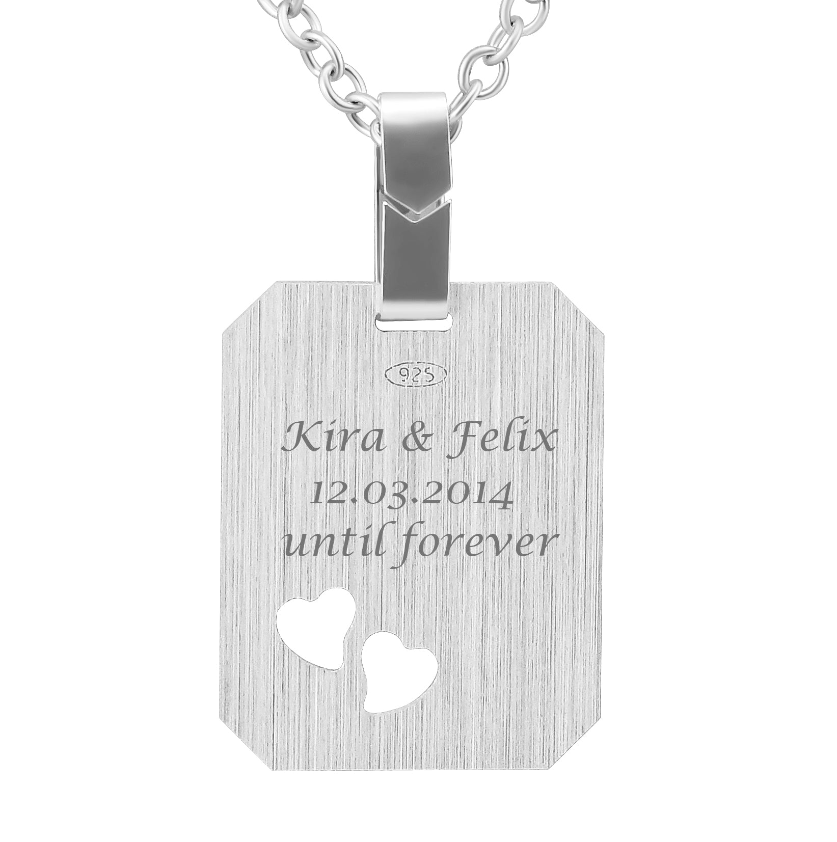 Eine Halskette mit Anhänger im ausgefallenen Design ist dank individueller Wunschgravur eine tolle und persönliche Geschenkidee. Der Lieferumfang enthält: 1 Gravierter Anhänger, 1 Kette, 1 Schmuckbeutel