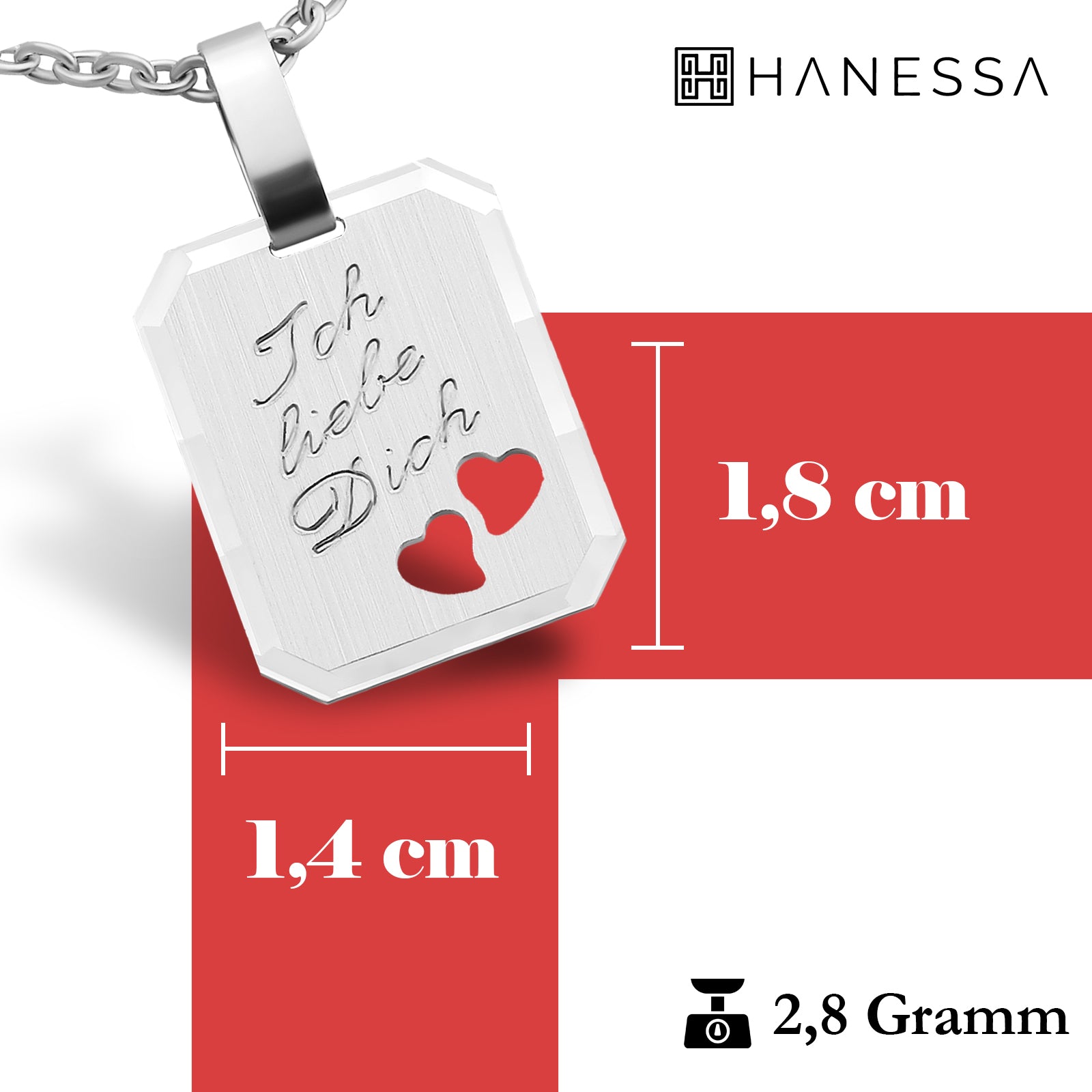 Mit Ihrer neuen Halskette von Hanessa halten Sie in kürze ein hochwertiges Schmuckstück mit persönlichen Gravur in den Händen. Durch unsere Liebe zum Detail erhalten Sie ein einmaliges Unikat, welches mit Ihrer Wunschgravur angefertigt wird.