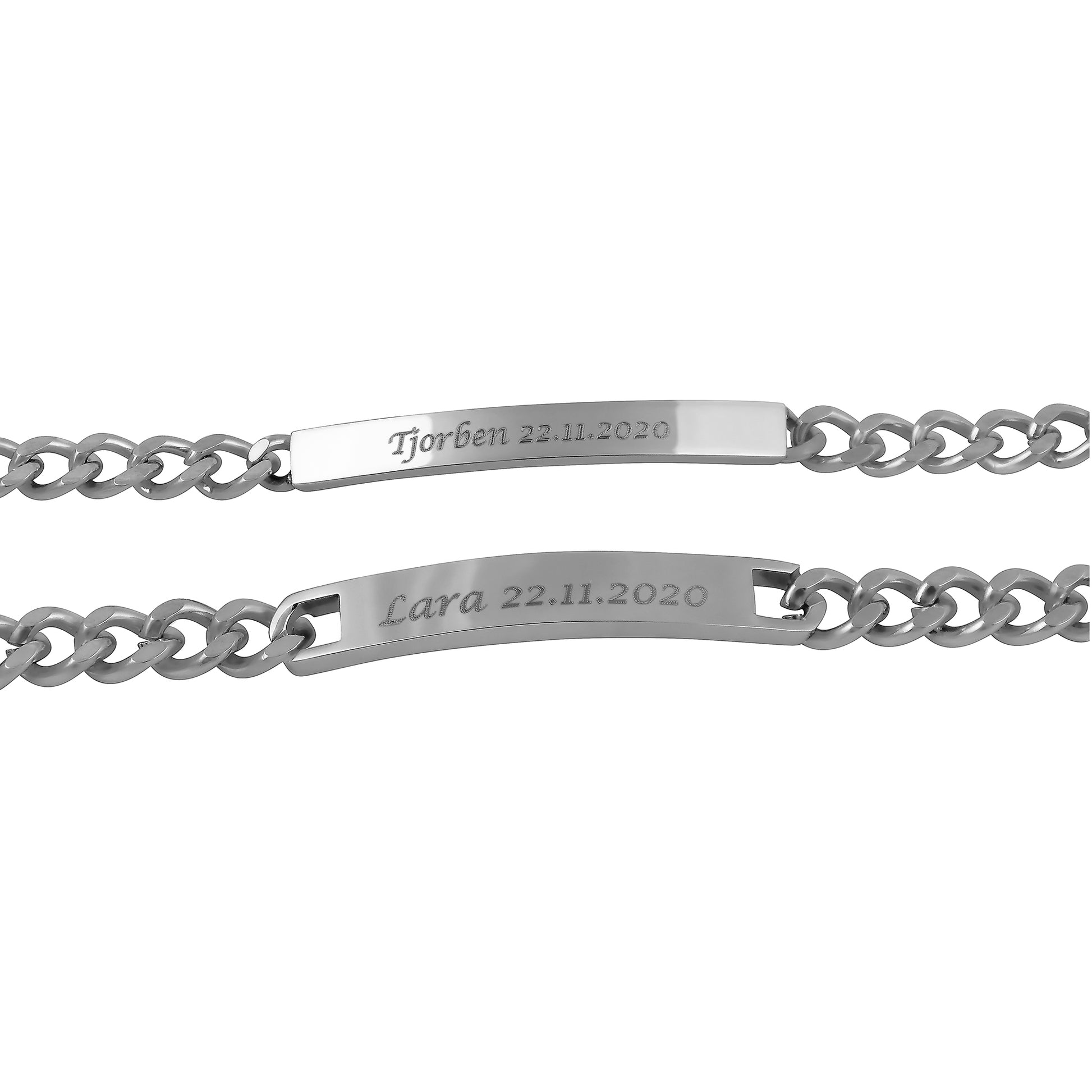 Pärchen Armbänder mit Gravur silber 20 cm und 21 cm - Armband personalisiert Edelstahl für Partner Familie Beste Freundin BFF - Partnerarmbänder 2er Set Armbänder für Paare