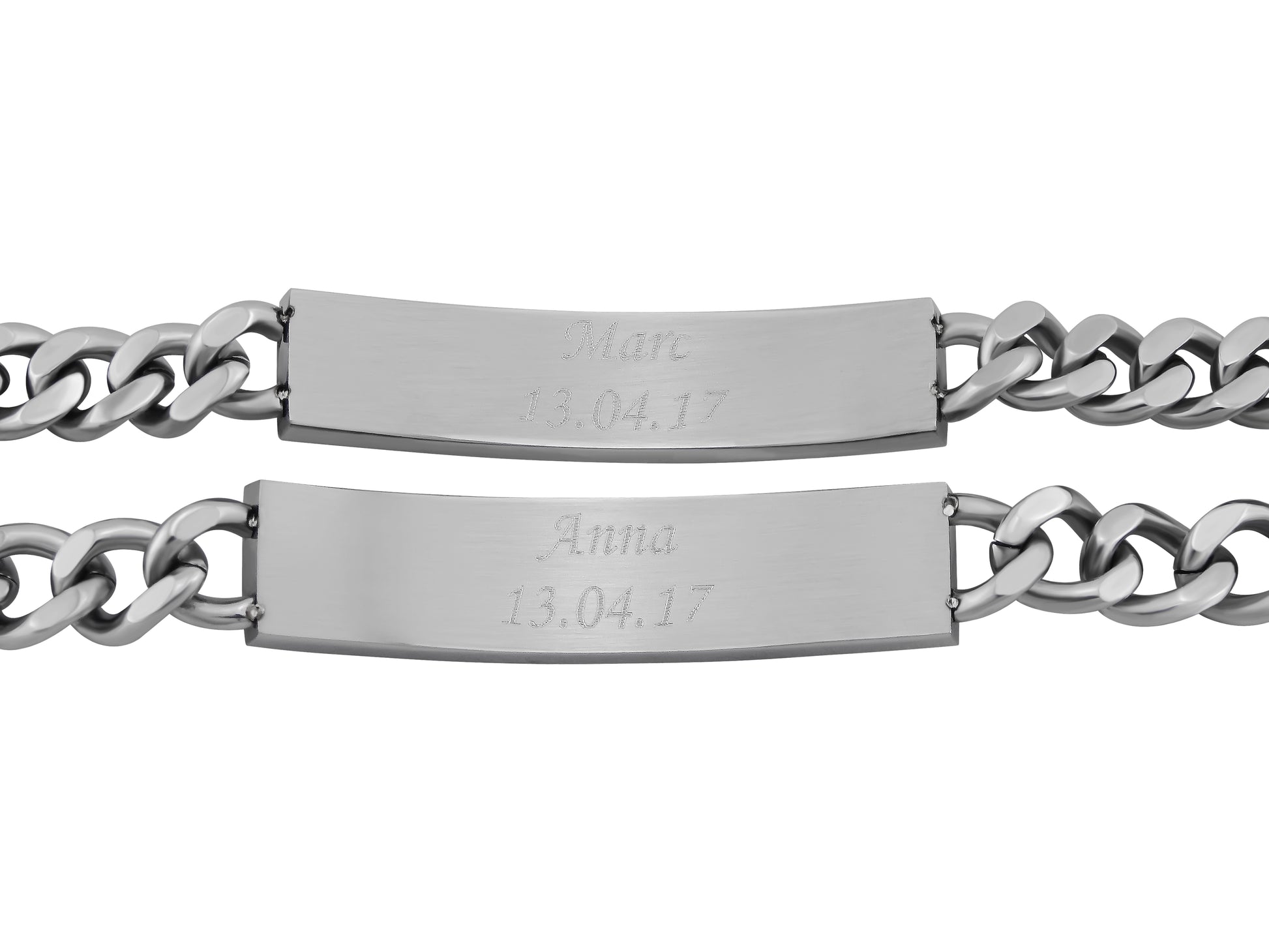 Armband im ausgefallenen Design dank individueller Wunschgravur eine tolle und persönliche Geschenkidee Lieferumfang: 2 Gravierte Armbänder, 2 Schmuckbeutel