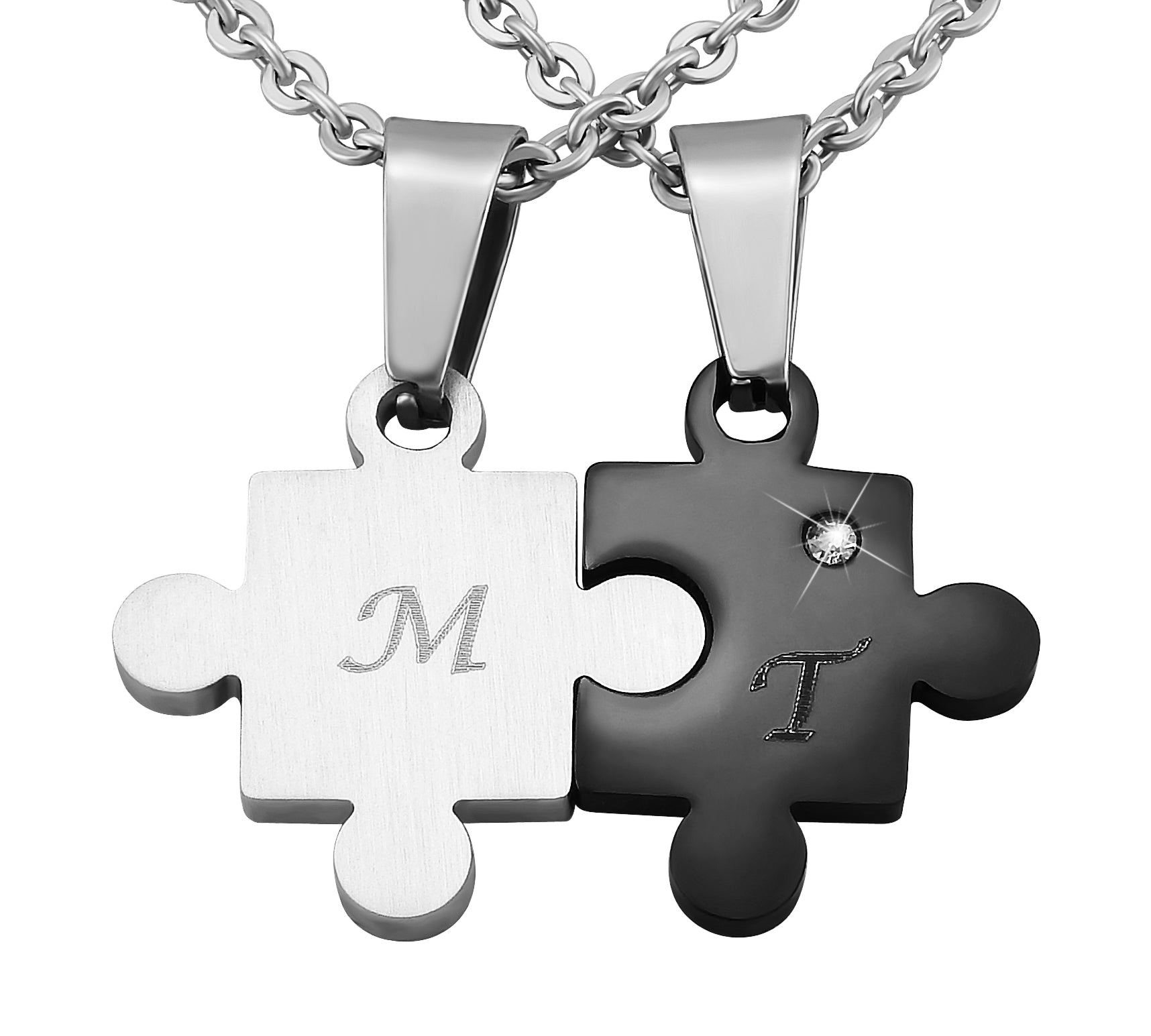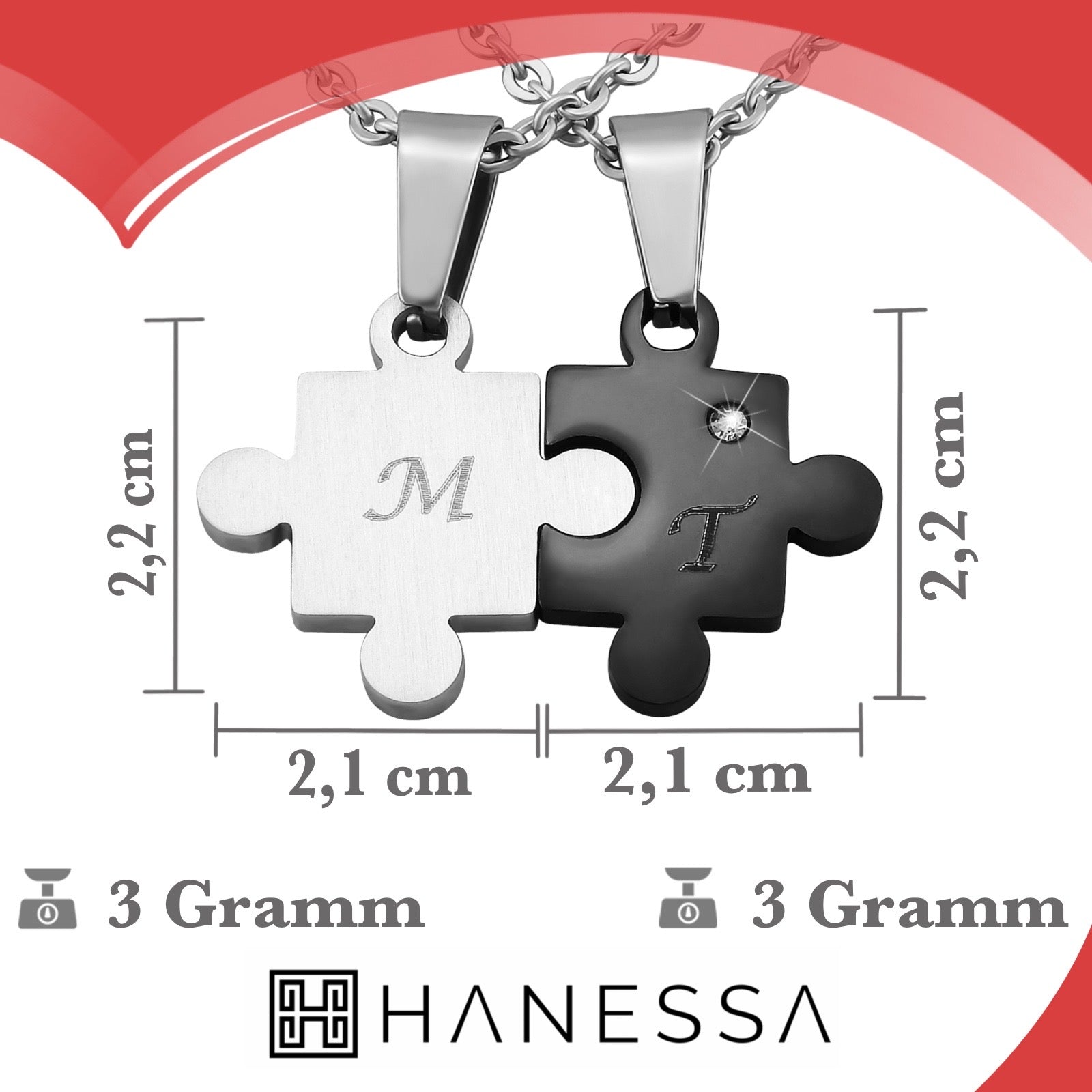 Personalisierte Kette mit Gravur Edelstahl 50 cm mit Anhänger Herz Puzzle in silber schwarz - Personalisierte Halskette für Freundin oder Freund