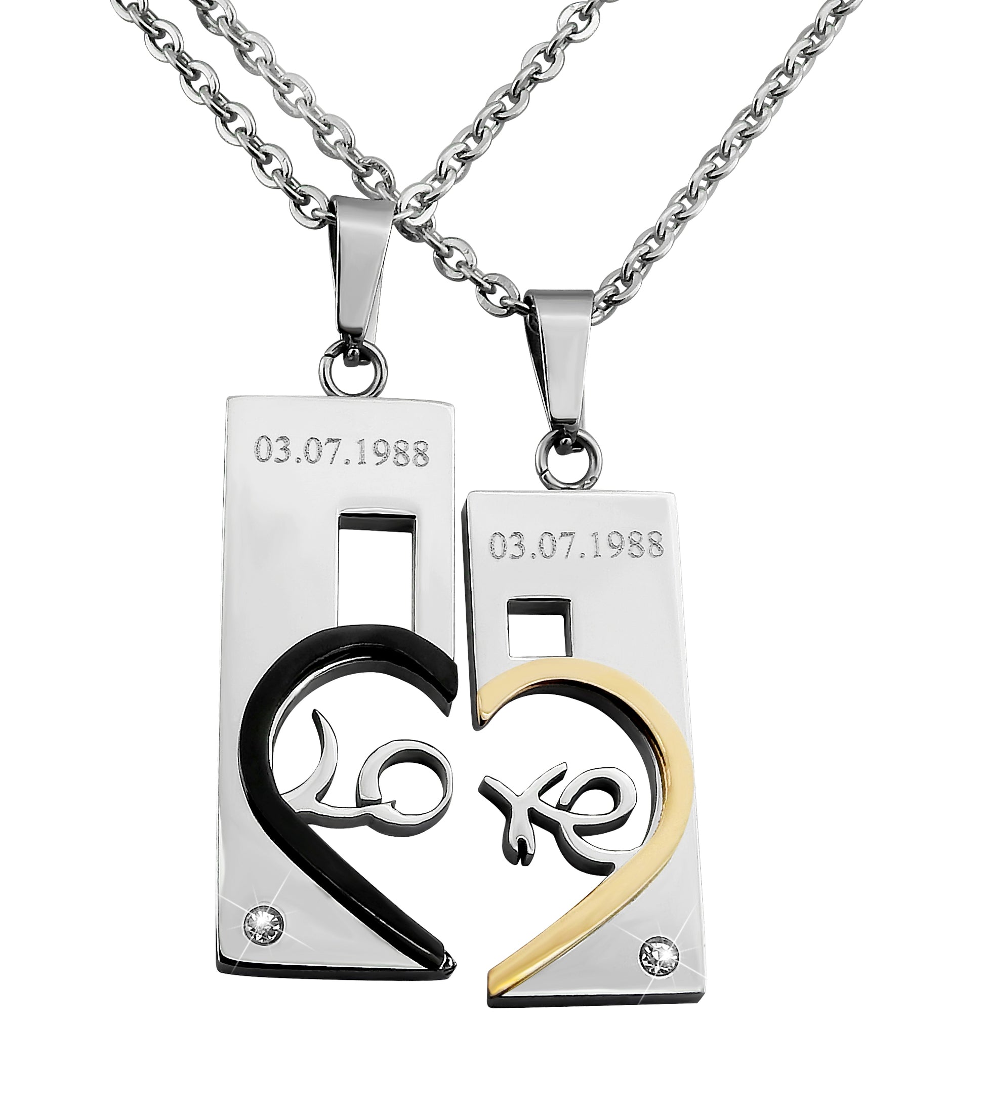 Hanessa personalisierte Partnerketten Set – 2-teiliges Edelstahl-Herzanhänger Set mit Gravur – Symbolische Liebeskette für Paare – Ideales Geschenk zu Weihnachten, Jahrestag oder Geburtstag