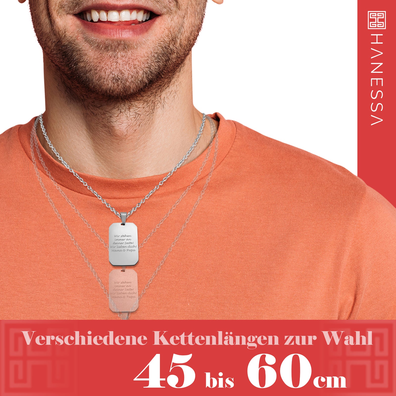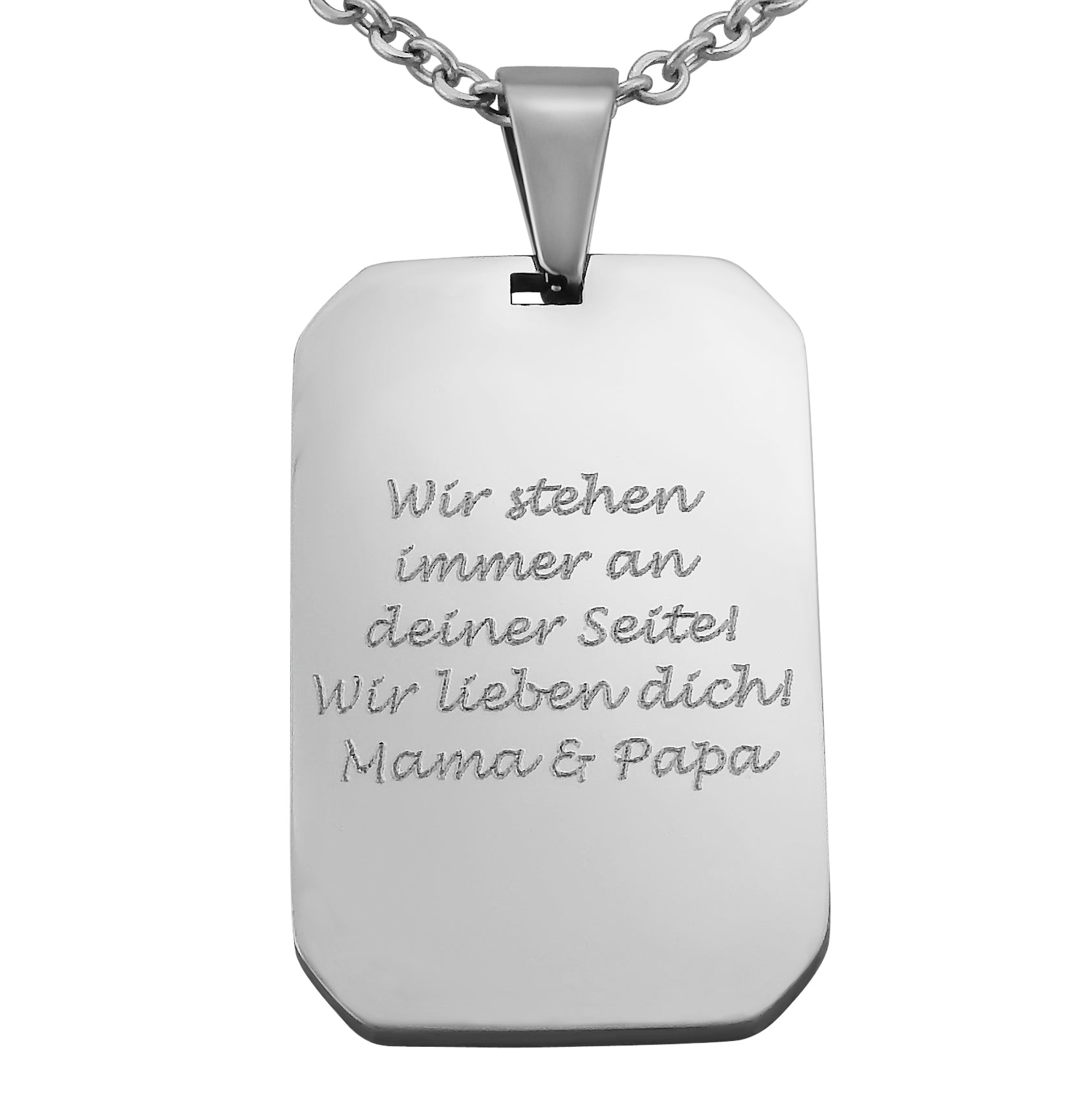 Personalisierte Kette mit Gravur Edelstahl 50 cm mit Anhänger Dog Tag Erkennungsmarke in silber