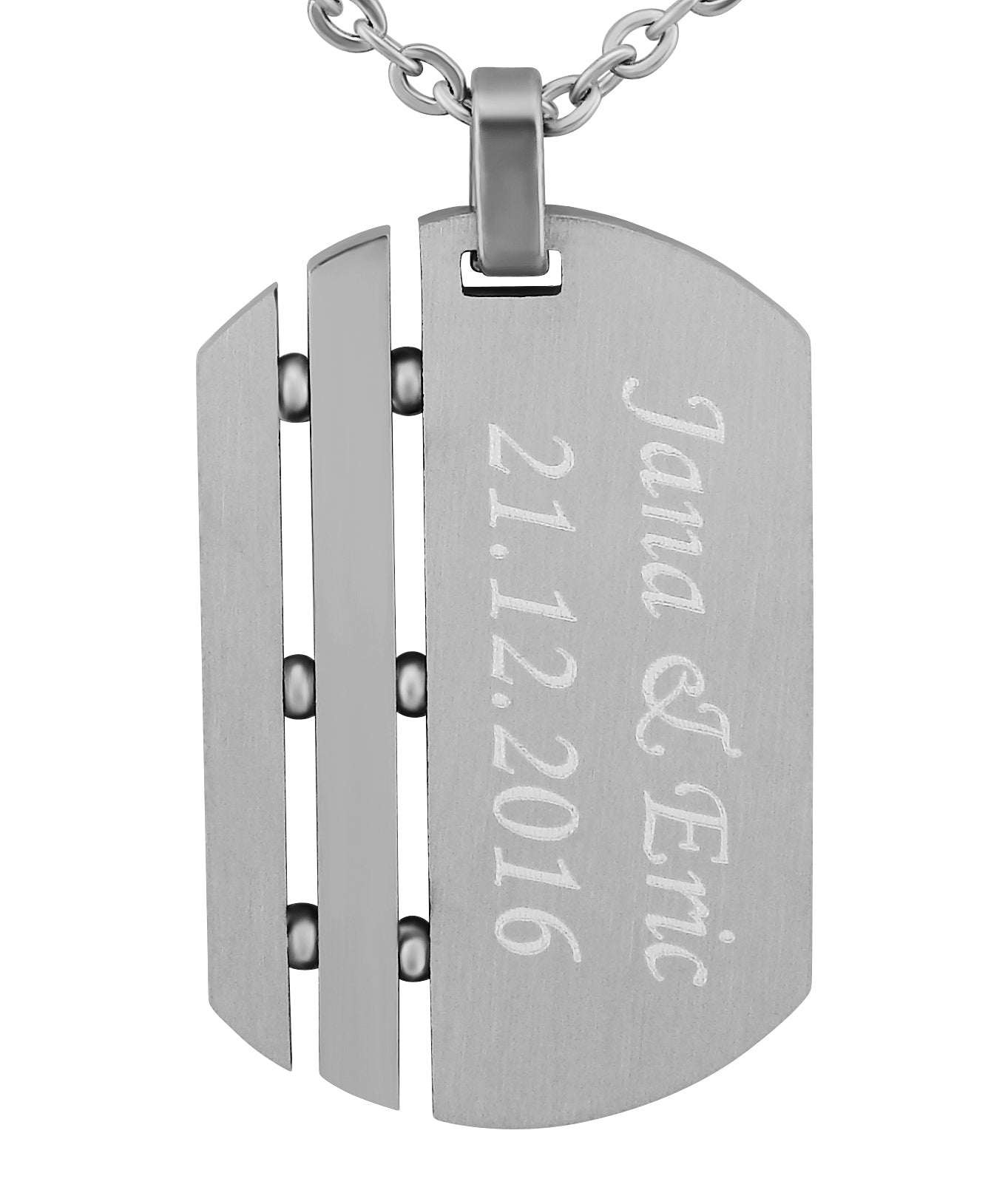 Personalisierte Kette mit Gravur Edelstahl 50 cm mit Anhänger Dog Tag Erkennungsmarke in silber
