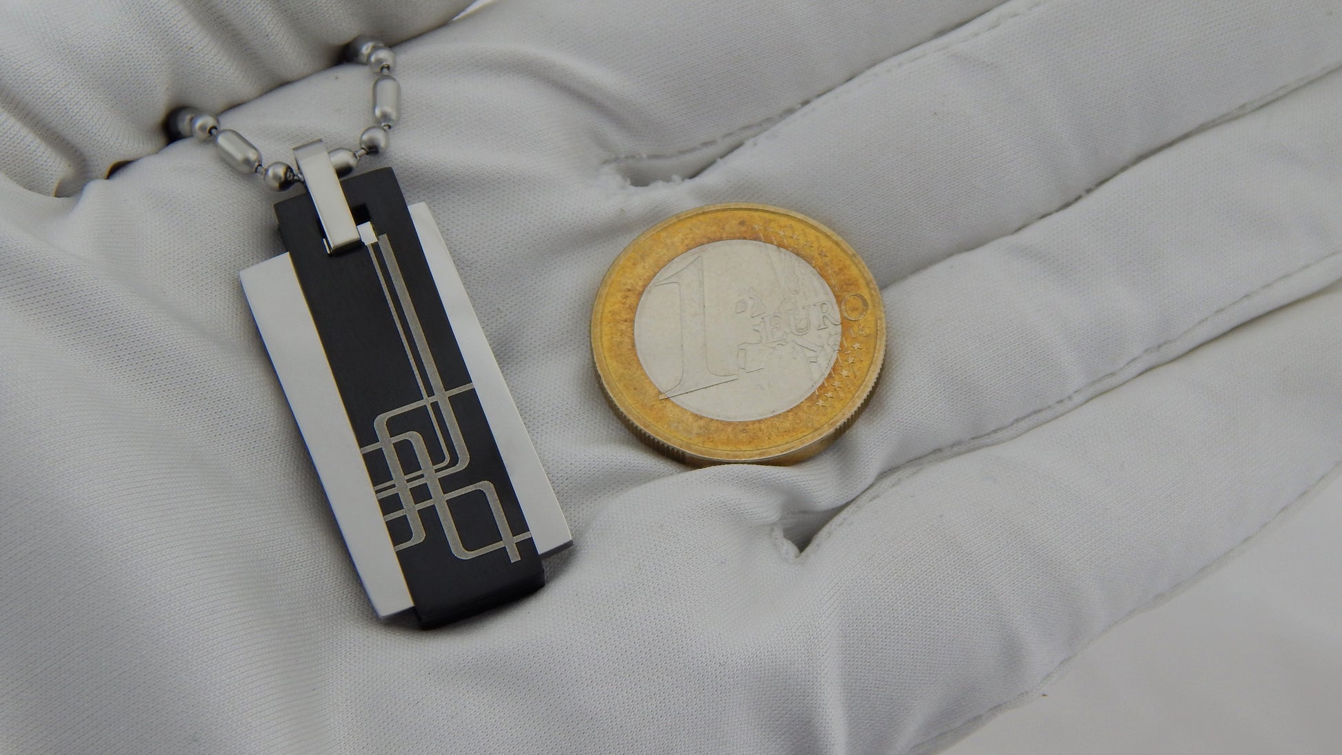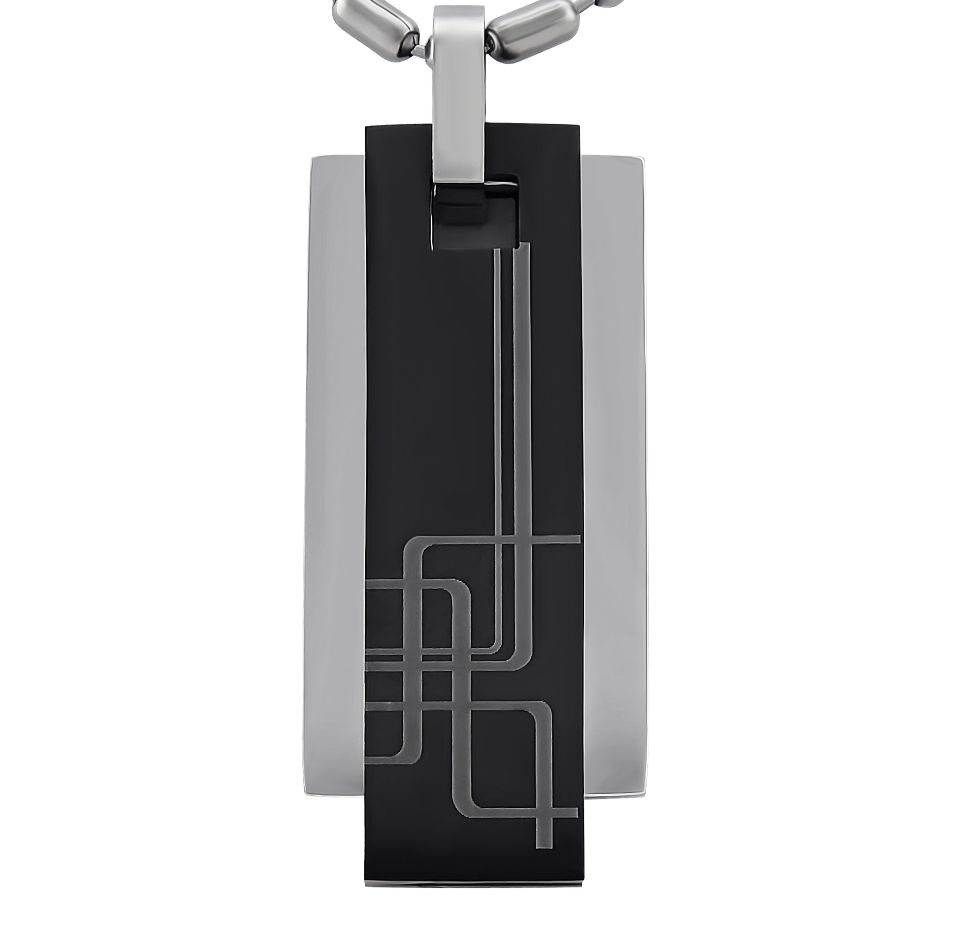 Personalisierte Kette mit Gravur Edelstahl 60 cm mit Anhänger Rechteck in silber und schwarz