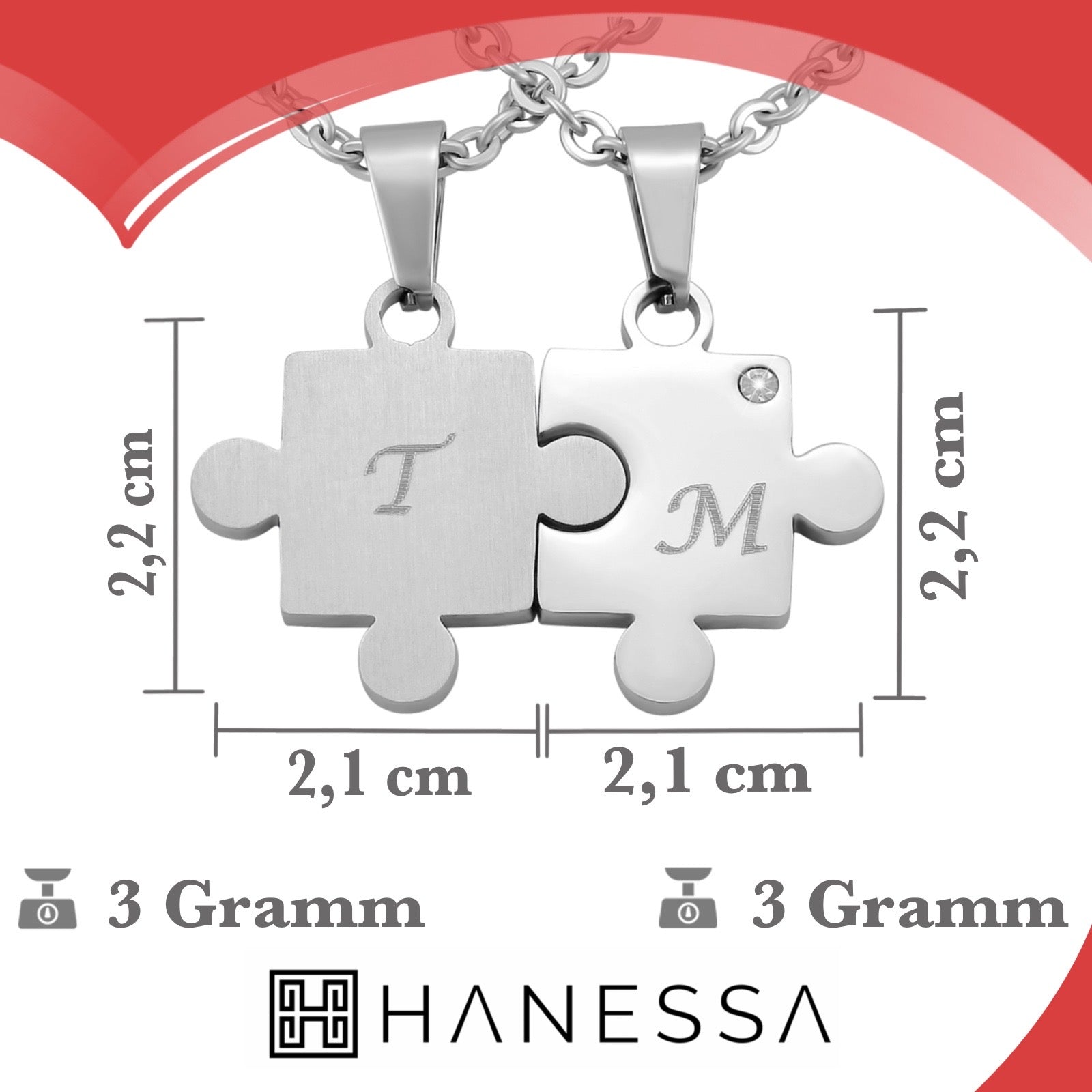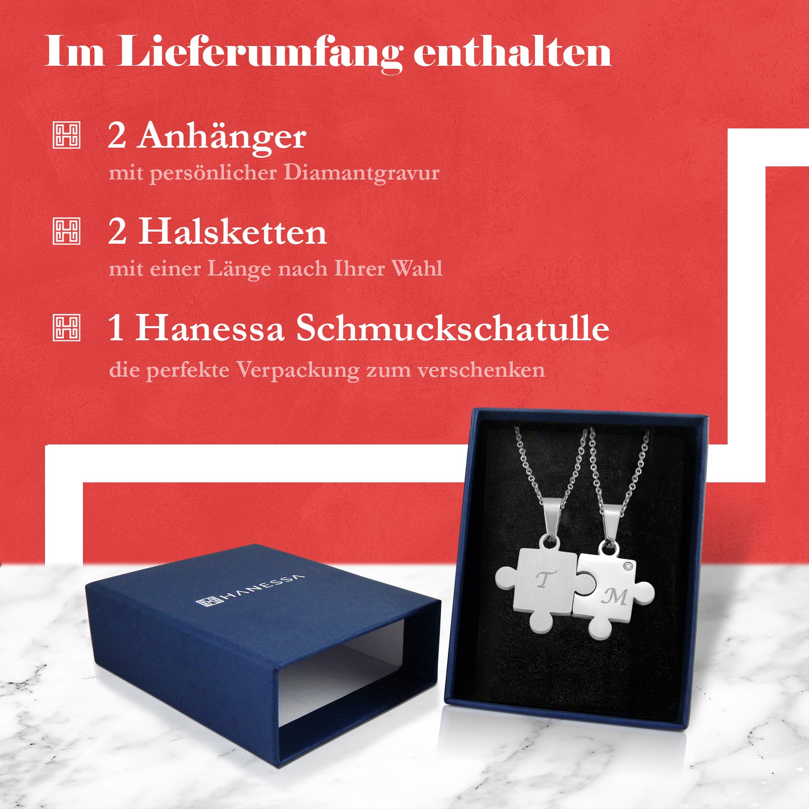 Kette mit Anhänger im ausgefallenen Design dank individueller Wunschgravur eine tolle und persönliche Geschenkidee Lieferumfang: 2 Gravierte Anhänger, 2 Ketten, 2 Schmuckbeutel