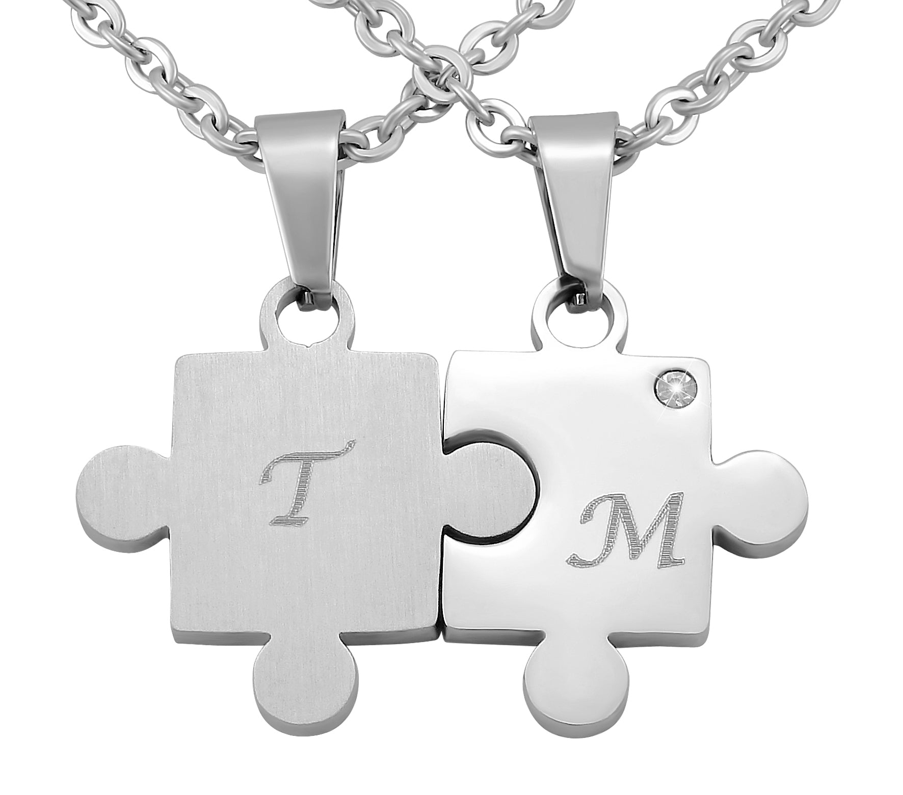 Personalisierte Ketten mit Gravur Edelstahl 50 cm mit Anhänger Herz Puzzle in silber